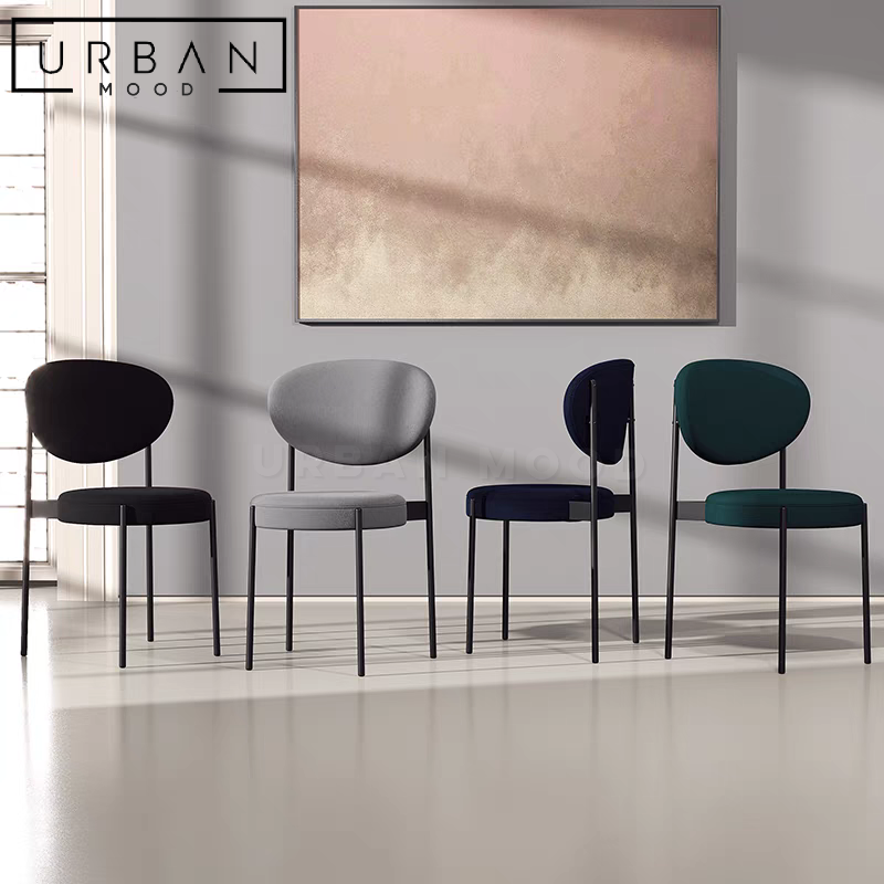 Featuring an oval-shaped backrest and a comfortable round seat, our ROYALE dining chair combines sophistication with comfort. The thin metal legs and frame add a touch of contemporary flair, creating a seamless blend of modern and classic design. Indulge in luxurious comfort as you dine in style with this statement piece. This design goes well with marble, sintered stone, and solid wood dining tables with its versatility.