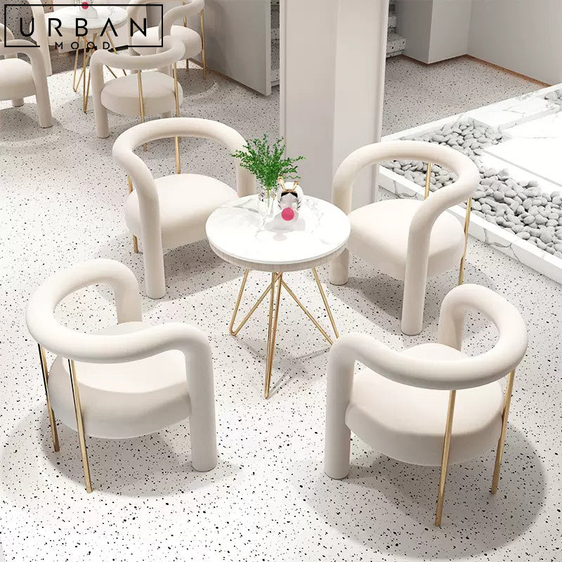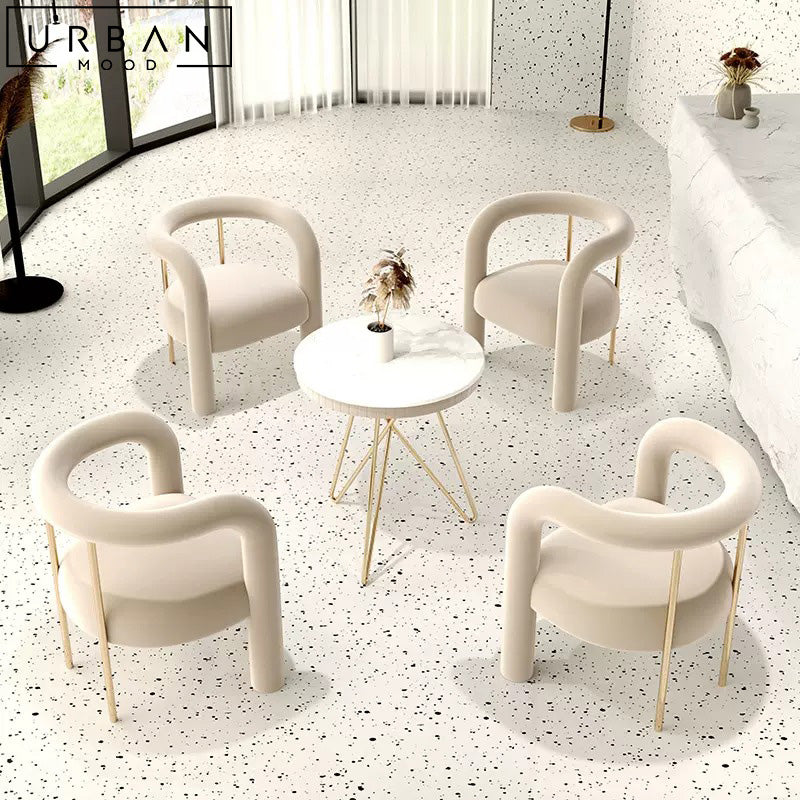 Add a touch of modern elegance to your living room with our dining chair. Featuring an adorable curved profile and minimalist design that complements various interior styles, from minimalist to Wabi Sabi, this leisure chair is upholstered in soft and luscious velvet, with a pine wood internal construction that ensures durability and longevity. Transform your dining or lounge room into a chic cafe with this trendy and chic chair.