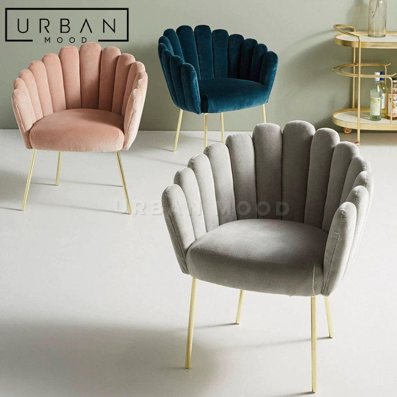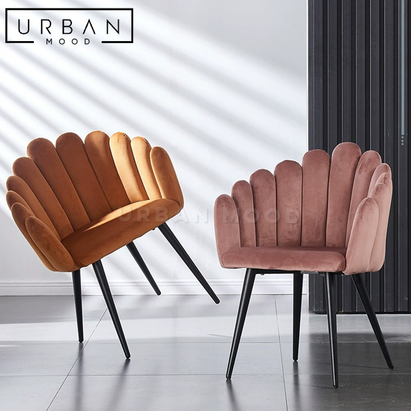 This stylish dining chair design boasts a gently curved backrest wrapped around a foam-filled core. Fully upholstered in velvet and balanced delicately atop thin stilted metal legs, our VILLEA chair adds an ultra modern accent to a classic design. This design goes well with marble, sintered stone, and solid wood dining tables with its versatility.