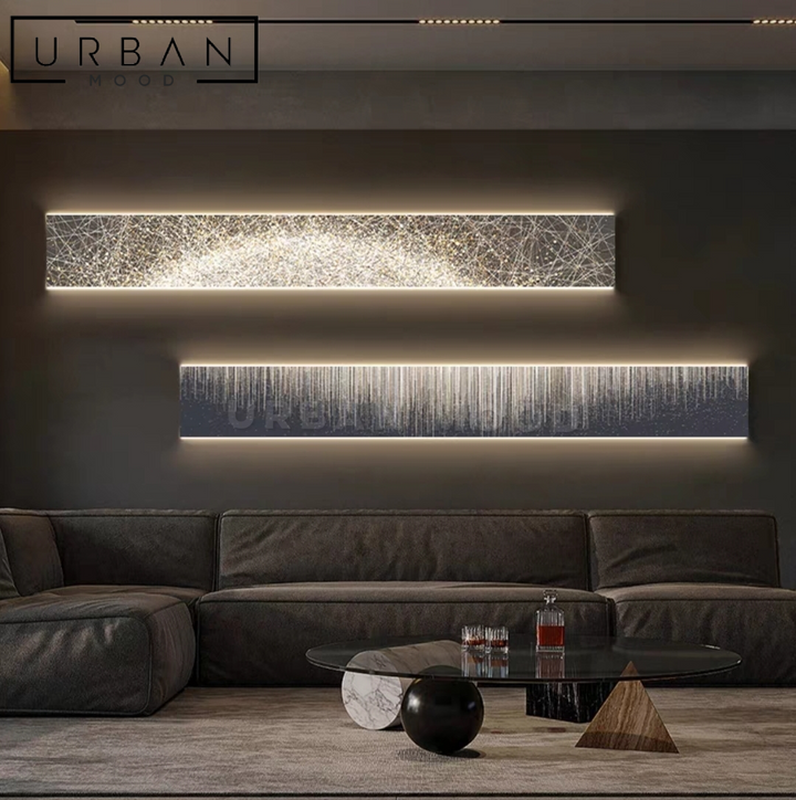 Illuminate and elevate your Iiving room or office lobby with our BEACON wall art. Featuring abstract light shards amplified by LED back-light, this wall art adds an artistic accent to any modern space.