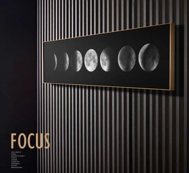 Showcasing different stages of the solstice total moon eclipse, this canvas painting is sure to add a touch of ethereal beauty to your modern or contemporary home.