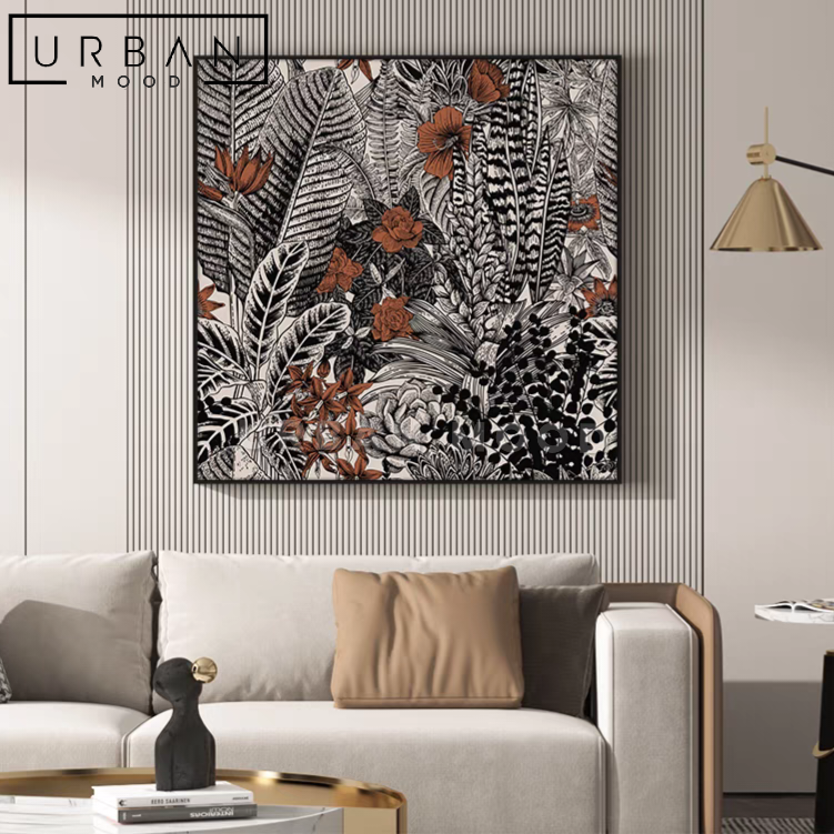 Adorn your hallway or bedroom with our EMORY wall art, featuring floral patterns on a canvas landscape. This abstract and eye-catching painting is sure to turn heads during social gatherings and house parties. Hang them in your foyer, bedroom, or living room for a touch of monochromatic simplicity.