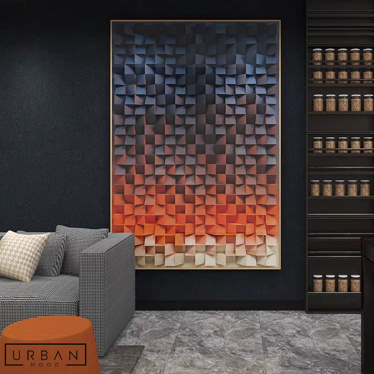 An eye-popping design featuring geometric wood pixels in ombre shades, our IDYLL mosaic wall art will turn heads in your showroom, office lobby, hallway, or living room. Choose between 3 colour combinations to best complement your modern or eclectic space.