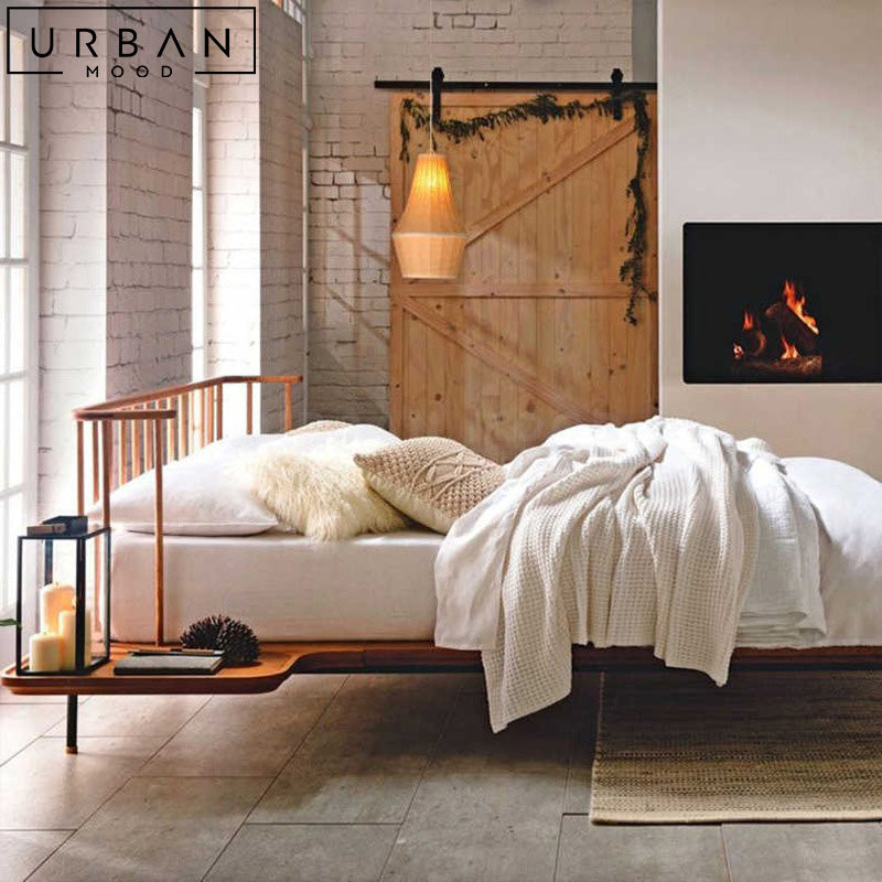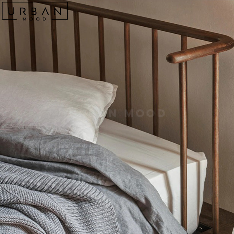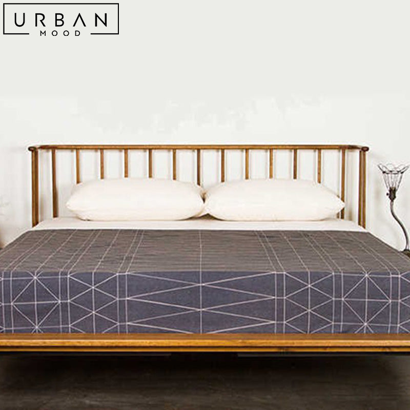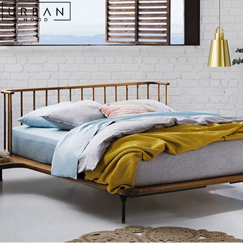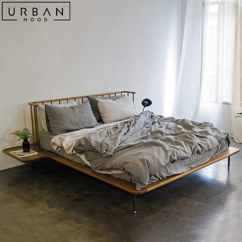 An outstanding design featuring a wooden grill head board, our BERTO bedframe. combines modern aesthetics with a vintage flair, complementing any rustic, farmhouse, eclectic, or industrial bedroom decor. Showcasing a sleek ash wood frame and base, the bedframe sits atop thin metal legs that add a contemporary touch. Redefine your bedroom with this modern bedframe, providing the perfect balance of form and function.