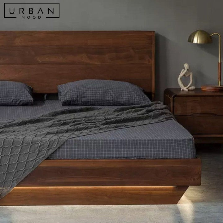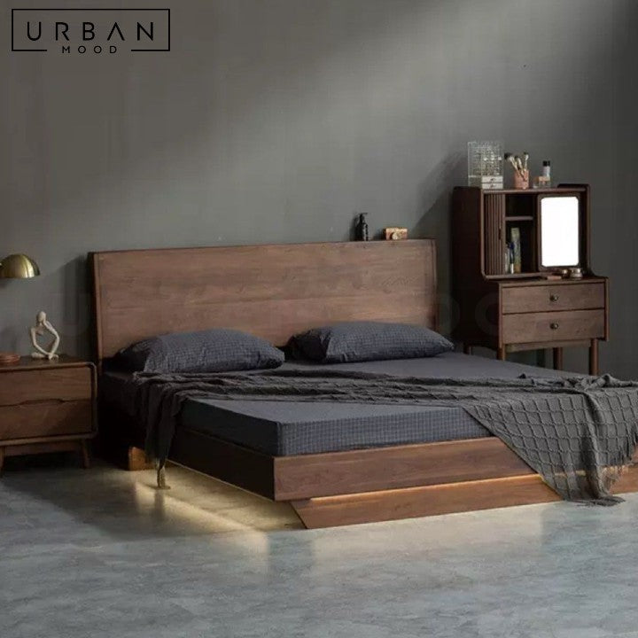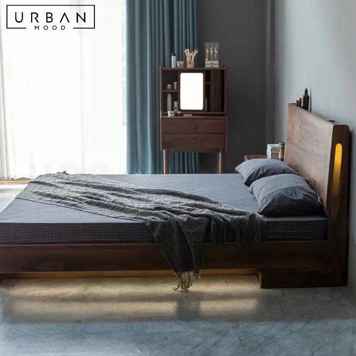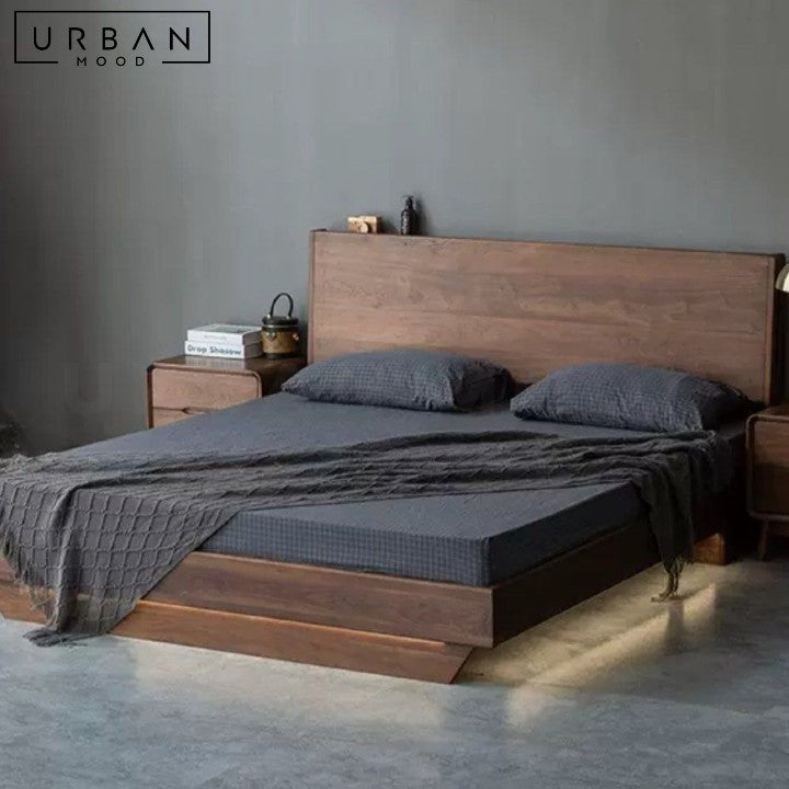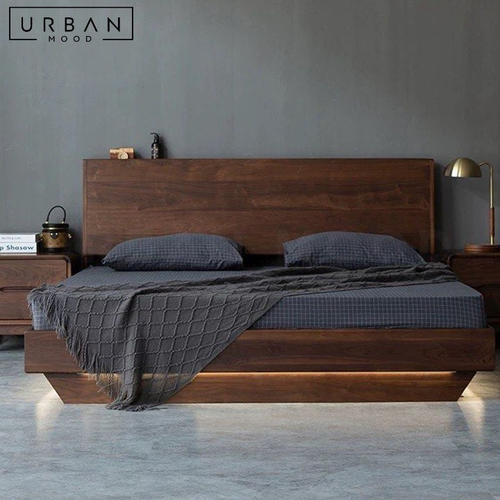 Introducing the OTTESEN Solid Walnut Wood Storage LED Bedframe, where modern innovation meets timeless craftsmanship. Crafted from premium solid oak and walnut wood, this bedframe seamlessly combines style and practicality with integrated LED lighting and ample storage.