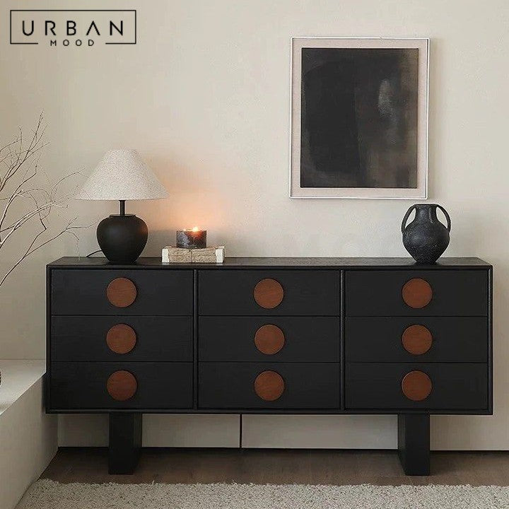 Crafted with care from oak wood, our ALLAR buffet is a nod to Mid Century design with its structured outline and contrasting wood finishes. Designed to add an artistic flair to any living, dining, or office space, the cabinet features multiple spacious compartments, offering ample storage for essentials while maintaining a clean, organized look. The natural grain patterns of oak add warmth and character, making it a versatile fit for modern, vintage, or Wabi Sabi interior styles.