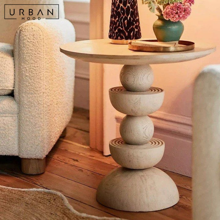 Celebrating Toman architecture and organic shapes, our AYMAN side table is lovingly crafted from natural oak wood, adding an organic flair while creating a warm and natural ambience. Perfectly designed for classic or contemporary interiors, its interesting shape complements any space, whether used as a bedside table or a living room accent piece.