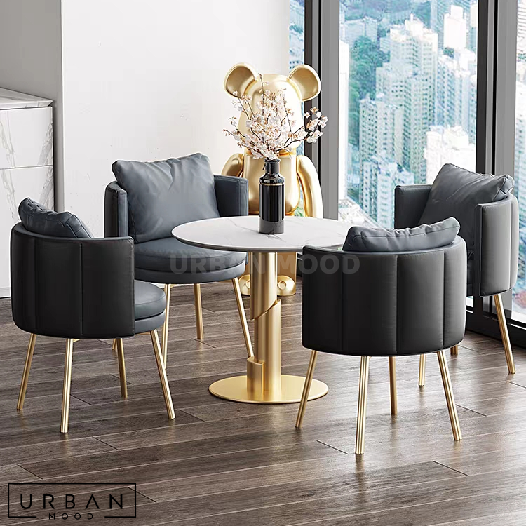 Perfect for breakfast nooks, cafes, and restaurants, our BLESS dining set offers a contemporary touch to both personal and commercial spaces. Crafted with highly durable sintered stone for the tabletop and luxurious faux leather upholstery for the chairs, this modern dining set is both aesthetically pleasing and durable for both cozy gatherings or cafe settings. Set the ambiance in your modern, classic, or contemporary lounge room or restaurant with this beautiful dining ensemble.