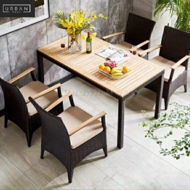 Perfect for both outdoor and indoor settings, CLAYTON is crafted with the high quality Myanmar teak wood and synthetic rattan. Suitable for any weather regardless of whether rain or shine, you can have your al fresco with a little touch of vintage or rustic style.