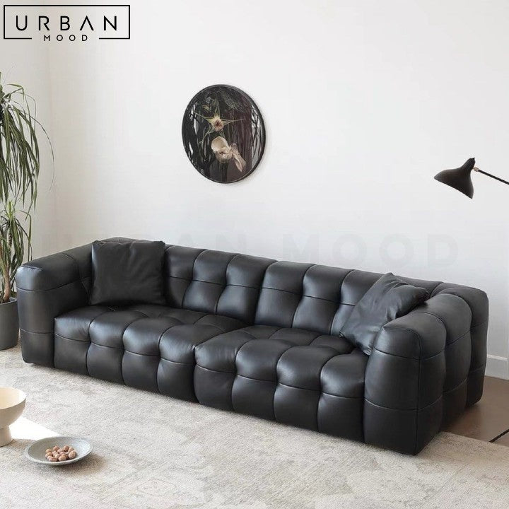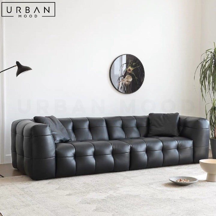 Our DUNN couch blends contemporary elegance with comfort, making it a perfect addition to any living space. Upholstered in faux leather, this sofa provides a sophisticated look that's easy to maintain. The high-resilience foam cushions offer exceptional comfort and support, ensuring a relaxing experience.