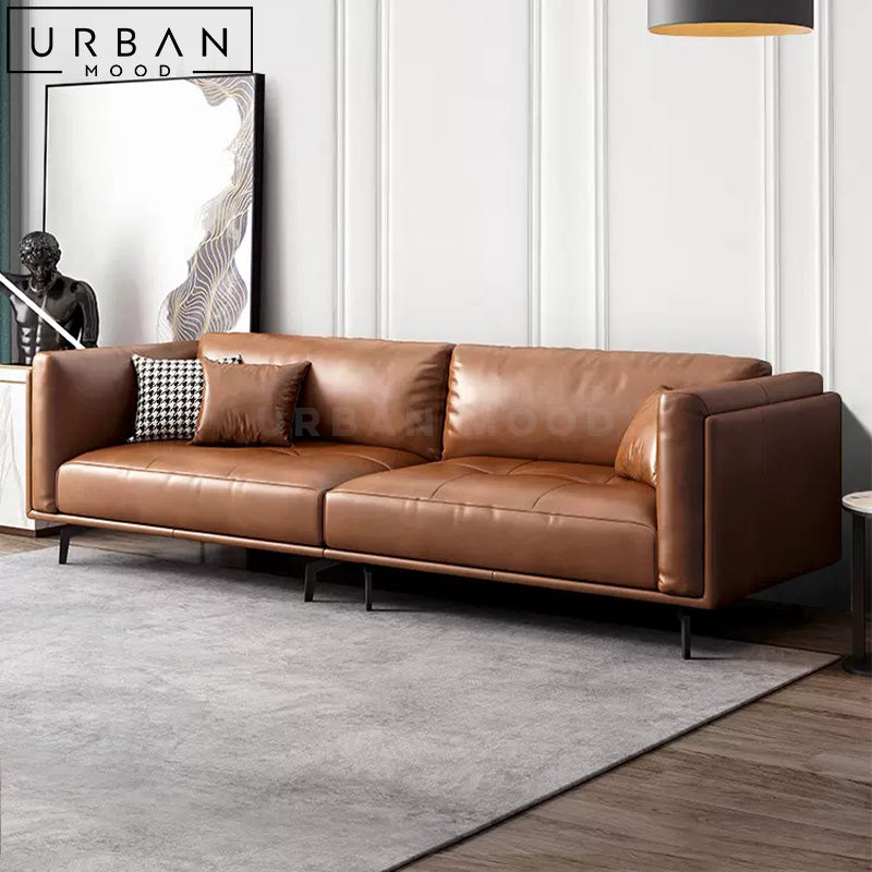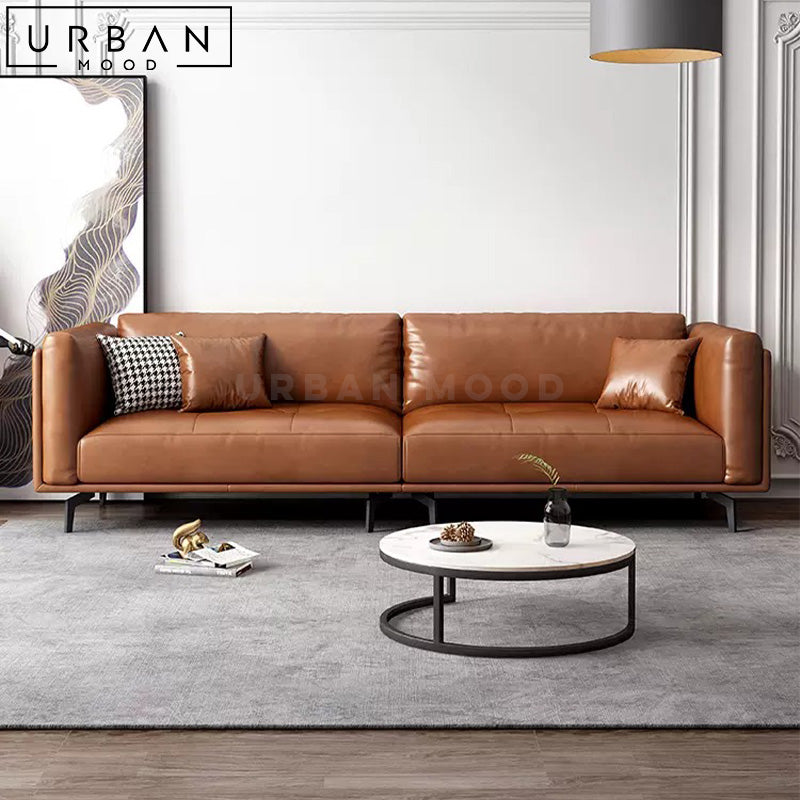 Upgrade your living space with our EVAGE modern leather sofa, thoughtfully designed to enhance your interior. This versatile sofa seamlessly blends modern aesthetics with practical design, making it an ideal choice for various interior styles, from modern to industrial and vintage. Its clean lines and minimalist profile adapt effortlessly to your decor, from urban chic to minimalist elegance.