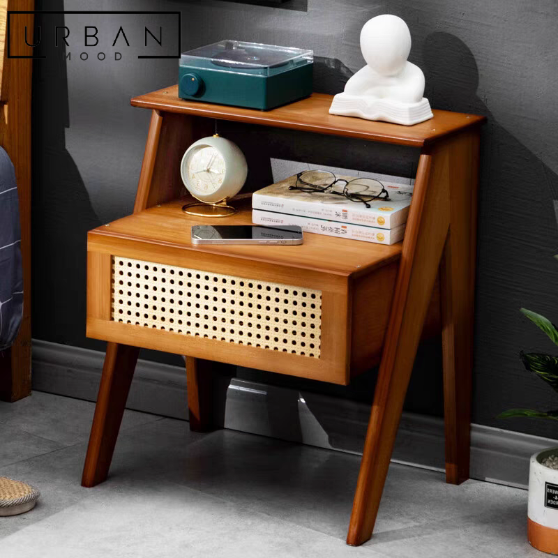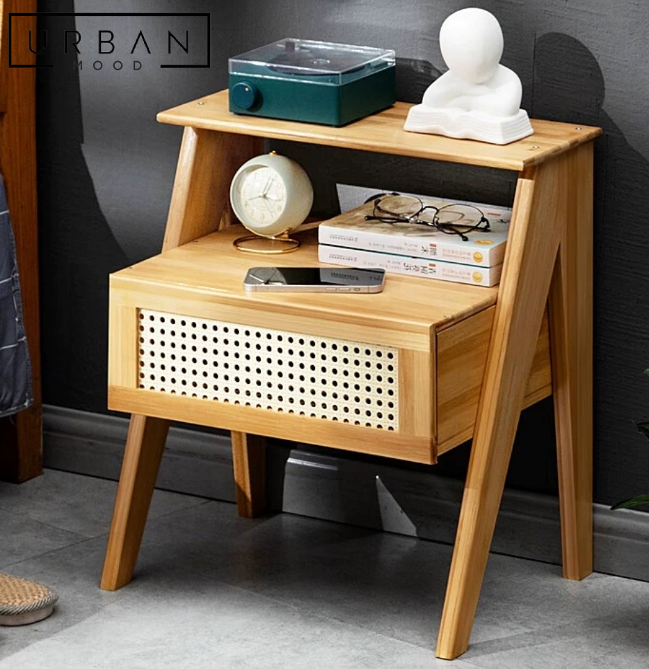Crafted from highly durable bamboo and ABS plastic, our GRAFTON side table features two tiers of shelving for your bedtime essentials and a nifty drawer to stow away your journal and night glasses. The waterproof surface makes this nightstand highly suitable for a home with kids and pets. Choose between natural oak and walnut to complement your Japandi, rustic, or cottage inspired bedroom.