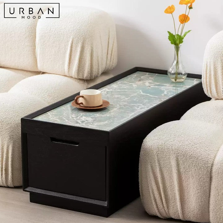 Enhance your home with the HOARAU Wabi-Sabi Wood Sofa Side Cabinet. Crafted from solid wood, this piece embodies the Wabi-Sabi philosophy, celebrating natural imperfections and rustic charm.