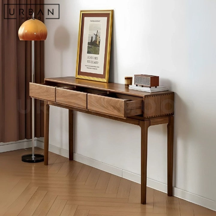 Lovingly crafted from FAS Grade North American walnut wood, our KVETA hallway console offers a stunning and practical addition to theboffice lobby, living room, or entryway. Its clean outline and organic material add radical warmth Scandinavian, rustic, and vintage homes.