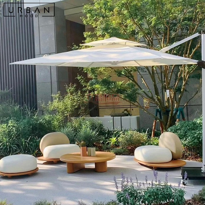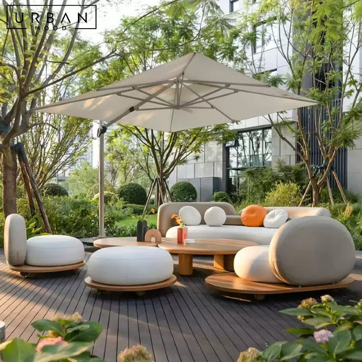 Designed for both style and comfort, our MEMORY outdoor series is both aesthetically pleasing and functional. Crafted with a high-quality teak wood base, this sofa features rounded seats and backrest upholstered in waterproof fabric. Its soft curves add flow and dynamism to any outdoor spaces, making it perfect for modern and Japandi patios, gardens, or terraces.