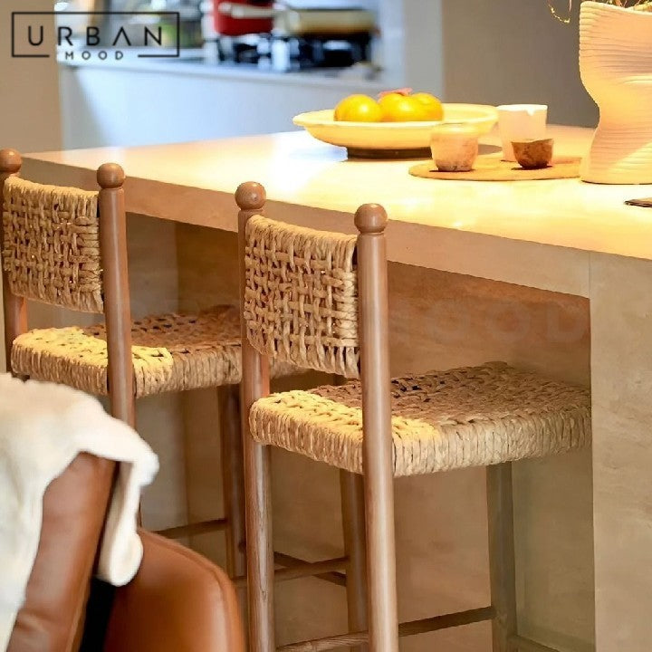 Crafted from North American ash wood and lovingly braided with handwoven Indonesian rattan, our MILADA island chairs connect natural texture with everyday durability. Its thoughtfully crafted frame offers reliable support, while the rattan seat provides breathable comfort for long sitting periods. Perfect for indoor and outdoor settings, this high chair adds radical beauty to any Island-inspired living space.