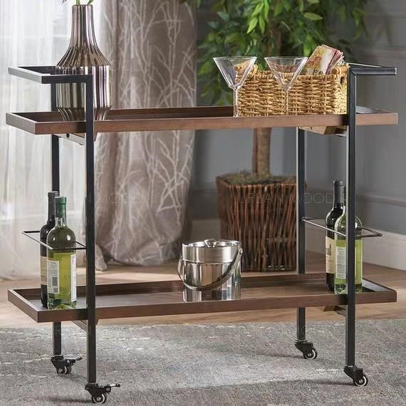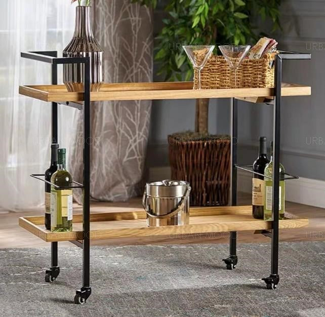 A minimalist approach to our Marley kitchen bar cart, the Monty trolley features clean-lined solid wood trays held together by matte black steel frames. Ideal for wine bottles and glasses, sauces, cutlery, and charcuterie displays, the bar cart is a fine addition to rustic, classic, or industrial spaces.