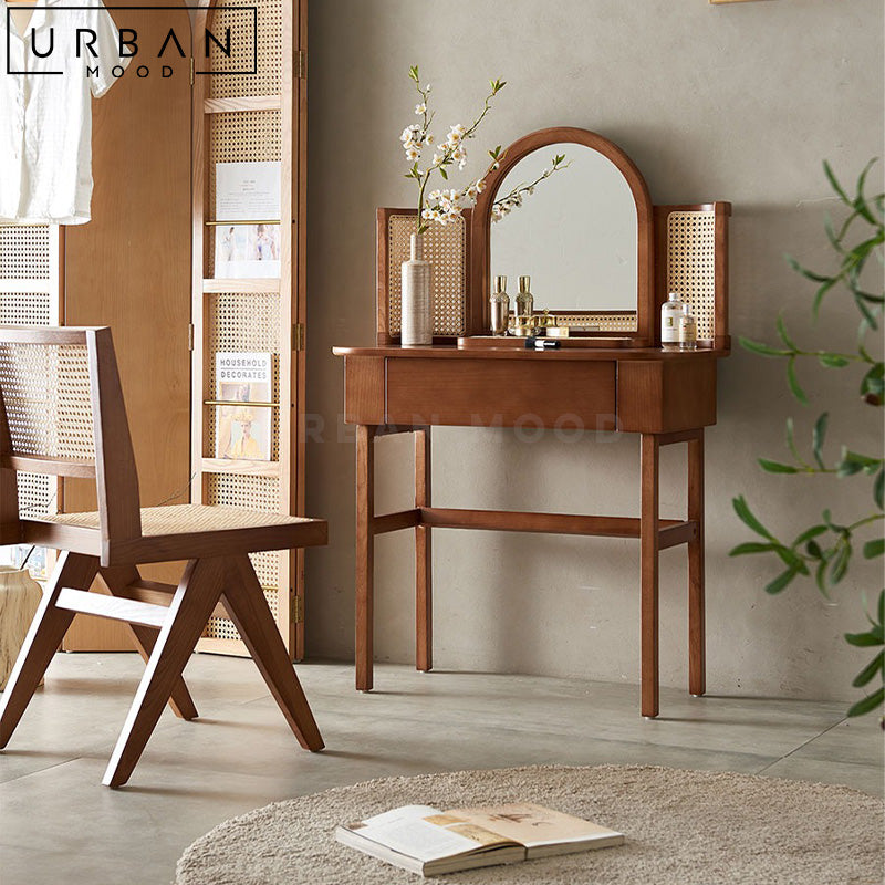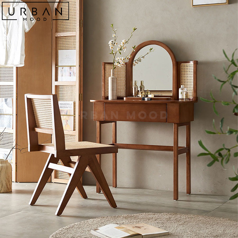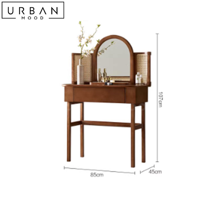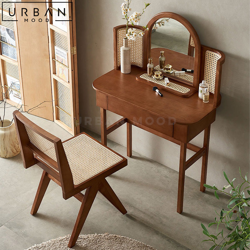 Prepare for and unwind from your day with our PIRRIE vanity table set in a soothing neutral nude palette. Featuring contrasting hardware in black for a pop of contemporary style, this dressing table comes with a chest of drawers for your beauty essentials and accessories. Switch between cool, warm and daylight temperature on the LED mirror to create the ambience you need. This versatile and multifunctional design will complement any modern, hygge, or minimalist bedroom settings.