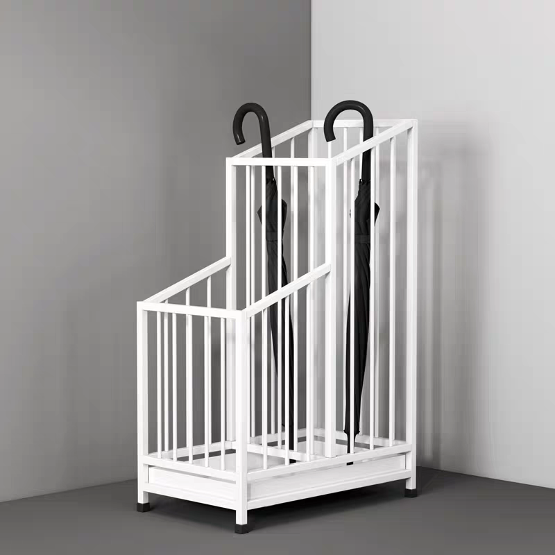 This metal umbrella stand not only holds your umbrella securely, but also has a convenient water catchment dish to prevent water from dripping onto your floor. The sturdy metal construction ensures durability and the sleek design adds a touch of style to any entryway. Keep your floors dry and your umbrella easily accessible with this practical and stylish umbrella stand.